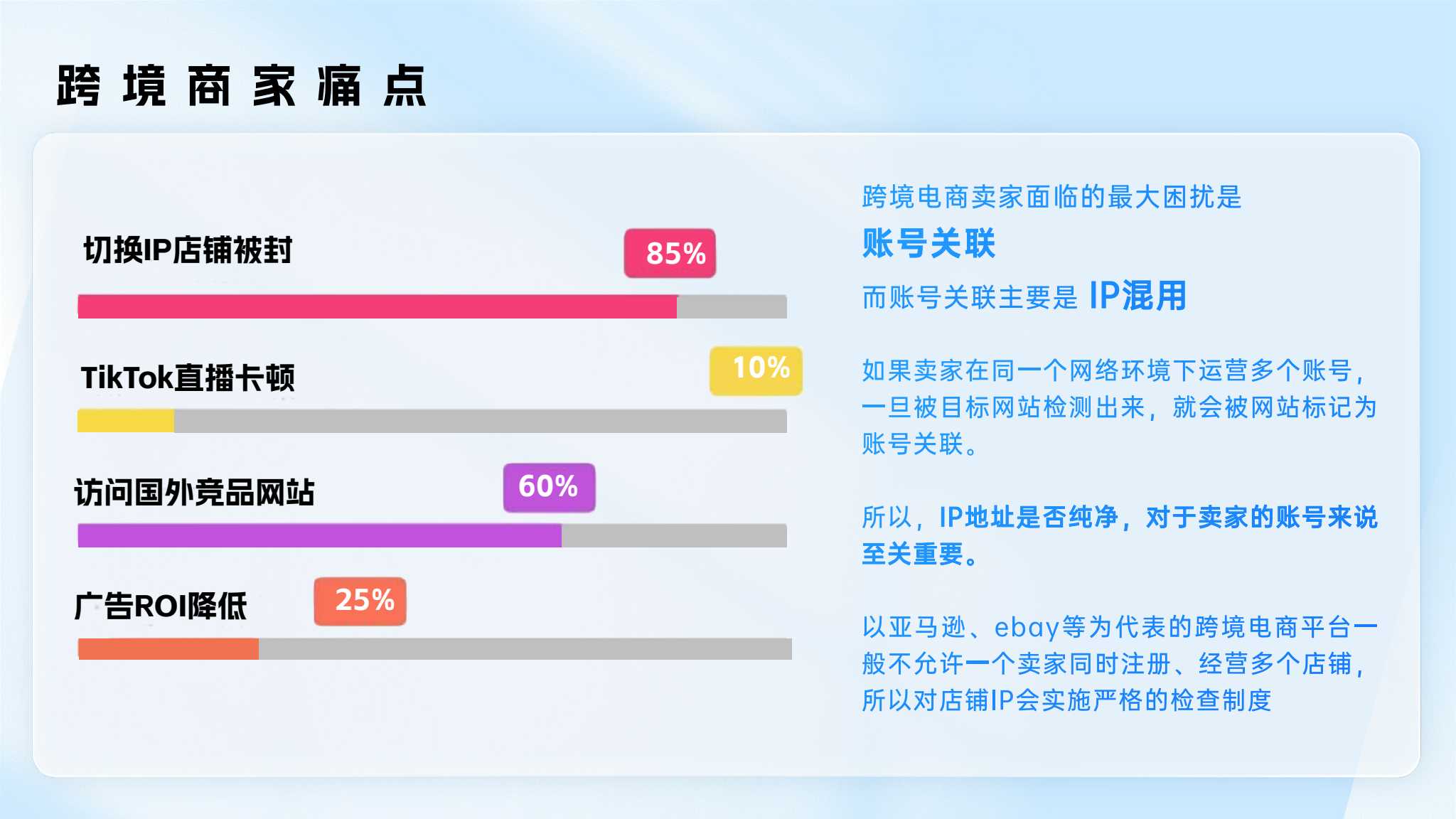 跨境電商行業(yè)專線方案:各電商賬號平臺防關(guān)聯(lián)解決方案提供純凈原生IP,保證賬號安全穩(wěn)定